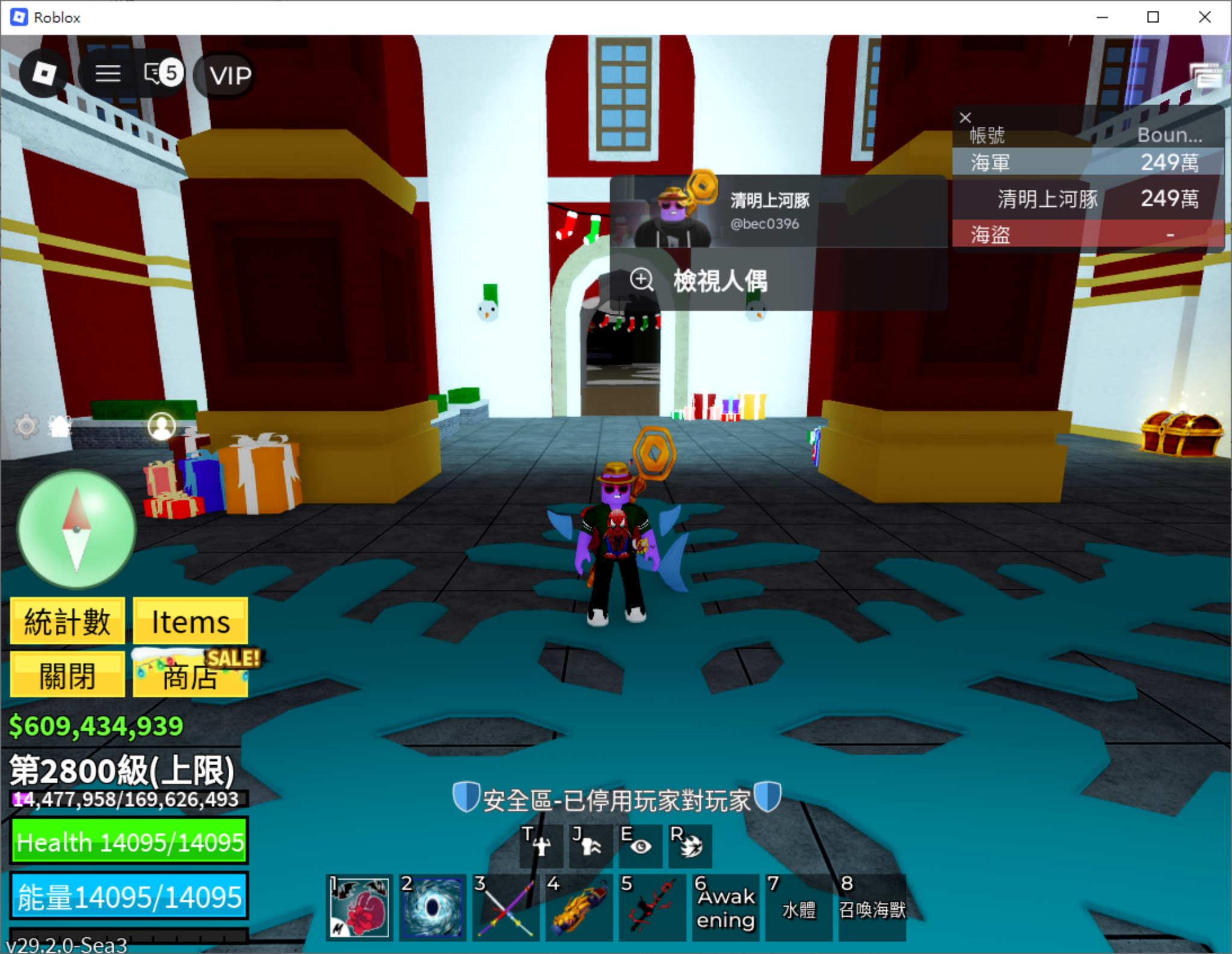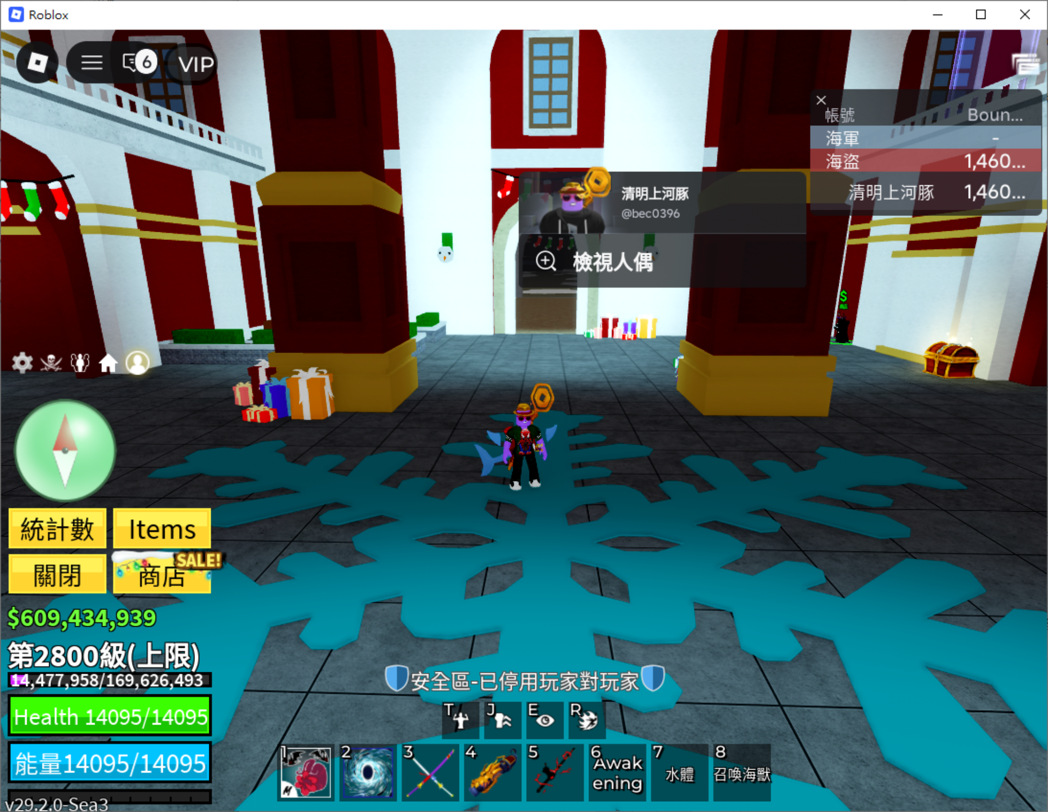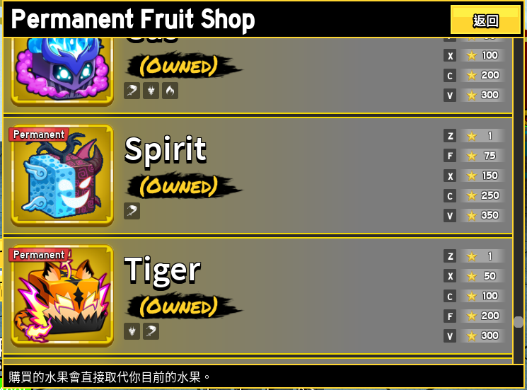 已擁有所有永久果實 (Perm Fruits)。所有技能皆解鎖,且每一顆果實精通皆達 600 MAX。