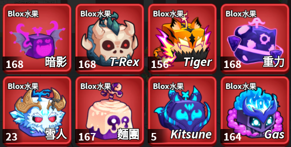 除了東龍、西龍、九尾、雪怪之外,其餘果實庫存皆在 130顆 ~ 168顆 (滿倉) 之間。